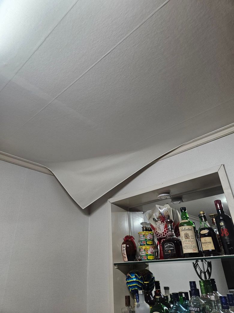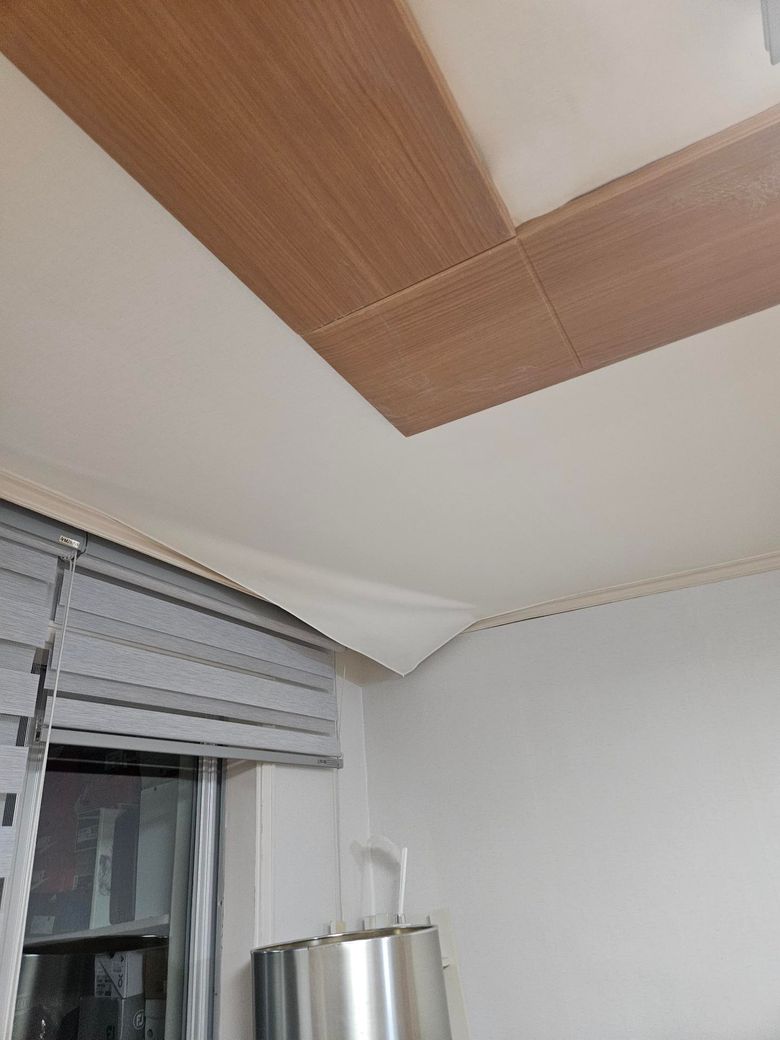 천장 모서리 부분은 결로나 누수로 인해 들뜸이 생길수 있어요. 원인이 습기라면 단순 보수만으로는 다시 떨어질 수 있어서 환기나 제습 관리가 필요해요. 약국에 파는 일반 주사기에 목공용 풀이나 도배 전용 풀을 담아 들뜬 틈 사이에 주입한 뒤,손으로 꾹 눌러 밀착시키고 마른 수건이나 롤러로 눌러주면 됩니다. 24시간 이상 건조하면 깔끔하게 붙을수 있을 거에요.