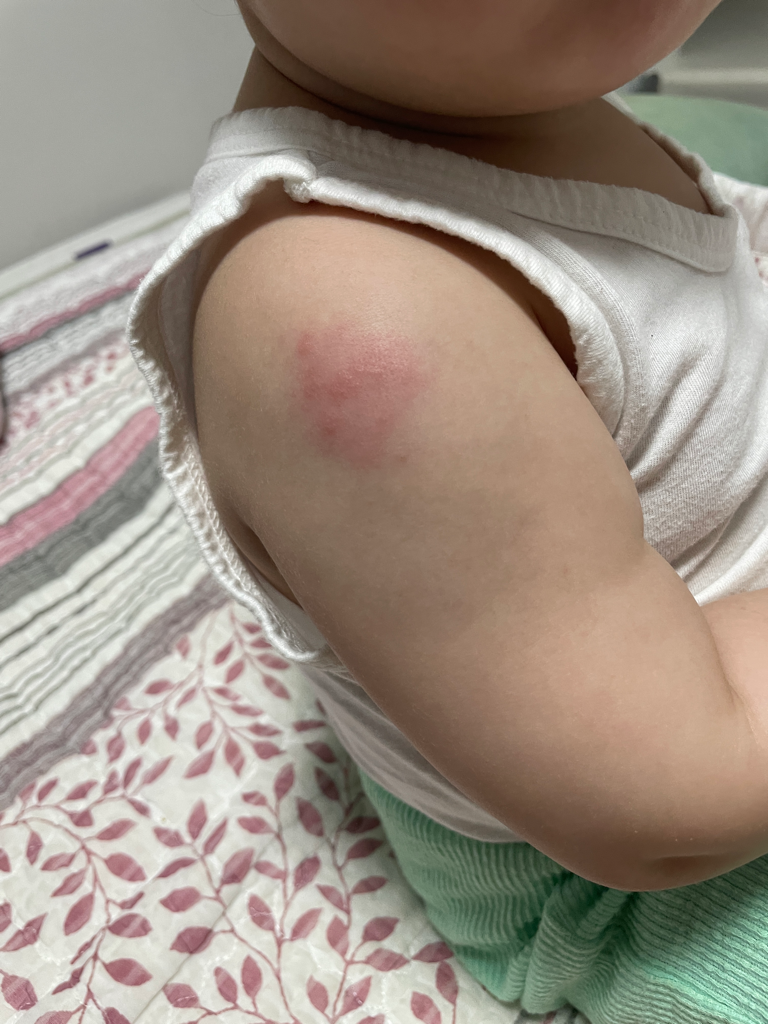 아이가 예방접종 후 발진이 발생한 상황입니다.