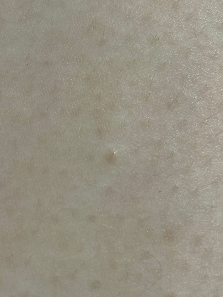 사진에 보이시는 것 처럼 좁쌀만한 돌기가 나고 간지럽습니다. 시간이 지나면 안 간지럽지만 돌기인 상태로는 계속 남아있네요 자세히 보면 털 나오는 곳? 모공? 쪽에서 나오고 가끔 간질면 부풀어 오를 때도 있습니다. 무슨 피부병일까요?