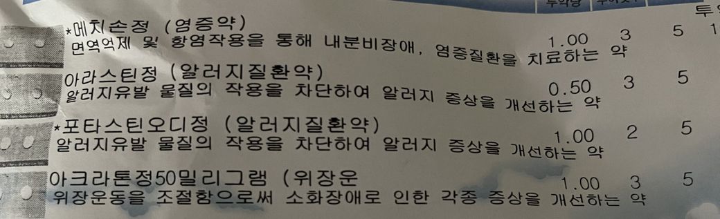 피부과 약은 항히스타민제, 스테로이드제, 위장약이고