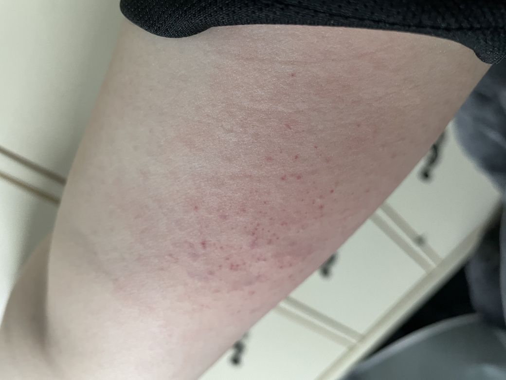 피부묘기증 등의 증상이 발생한 것으로 보입니다. 가까운 피부과 진료를 권장합니다.