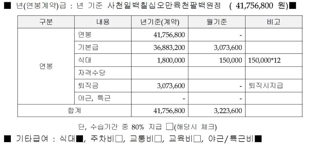 퇴직금 계산시 첨부한 연봉계약서의 이미지같이 퇴직금항목에
