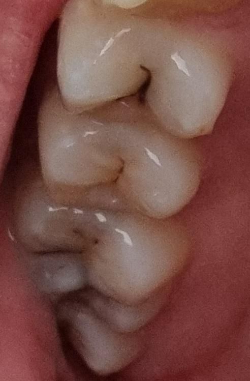내일 치과 방문 예정인데 미리 생각을 해두고 싶어서요. 위의 사진이 약 1년 반 전의 치아 상태, 아래가 방금 찍은 사진입니다 위에서 3번째 이는 신경치료하기로 했고, 나머지 두 개는 지켜보고 아프면 충치치료 하자고 하셨는데... 사진 비교했을 때 진행이 많이 된 편일까요