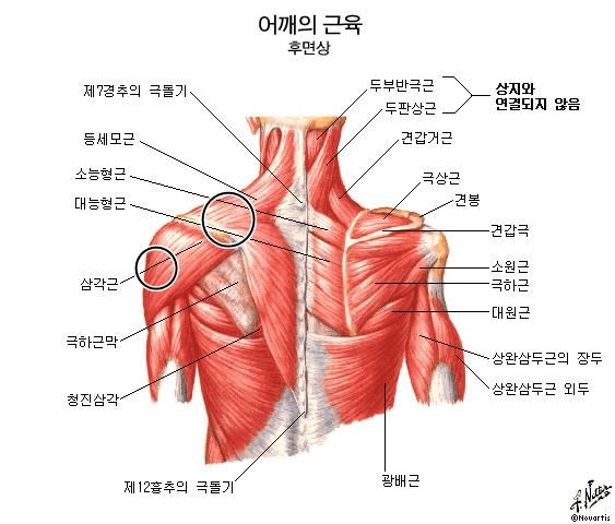 저번주부터 왼쪽 삼각근 바깥쪽부분과 등세모근부분이 뭉치거나 뻐근한게 느껴집니다
