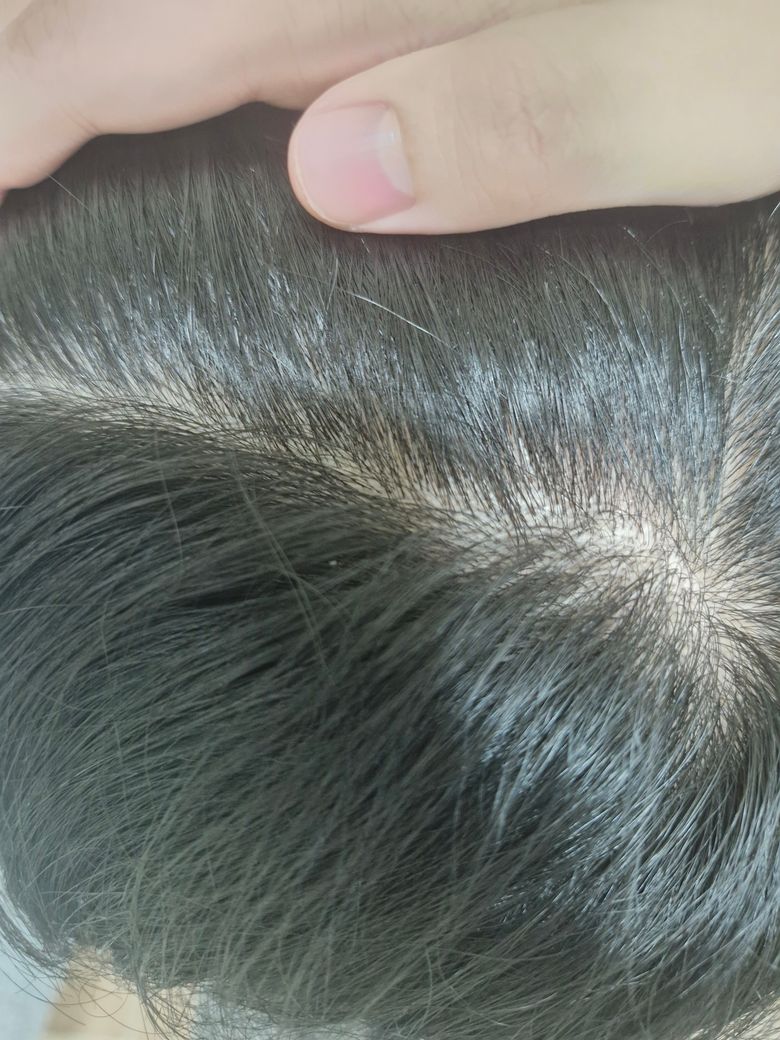 정수리 사진 한 장으로 탈모증 여부를 구체적이고 정확하게 판단하기는 현실적으로 어렵습니다만, 올리신 사진의 소견을 보았을 때에는 탈모증이 크게 의심스러워 보이지는 않습니다.