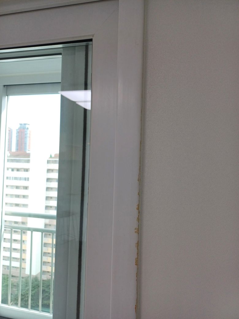 샤시와 벽지 사이에 시트지처럼 보이는 틀이 있는데