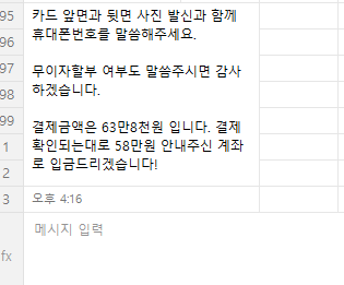 58만원 계좌로 환불해주고 63만 8천원 카드로 다시 결제하라는데 이게 맞는건가요?