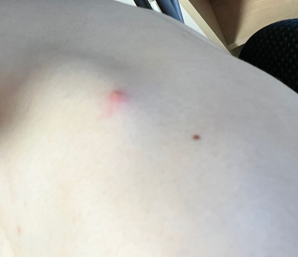 가슴부근과 어깨쪽에 붉은색 발진이 생겼는데 아프거나 가려운건 없고 볼록 튀어나왔어요