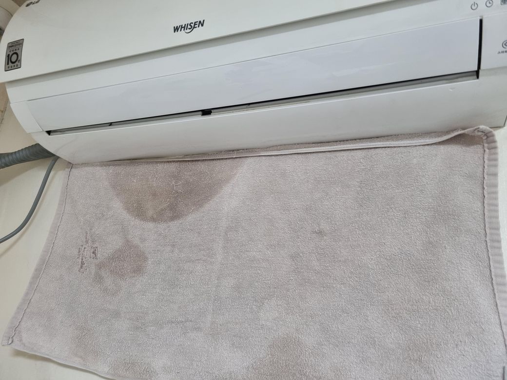 이유를 알수없는 누수가 발생하여 아래와 같이 벽지가 물에 젖고 드라이기로 말려도 이염된 색이 돌아오지 않았습니다.