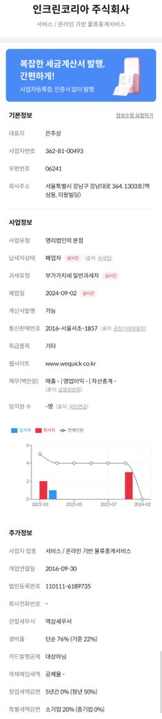 인크린코리아(주)는 2016년 9월 30일에 설립된 온라인 기반 물류중개서비스 기업으로, 대표자는 은주상입니다.