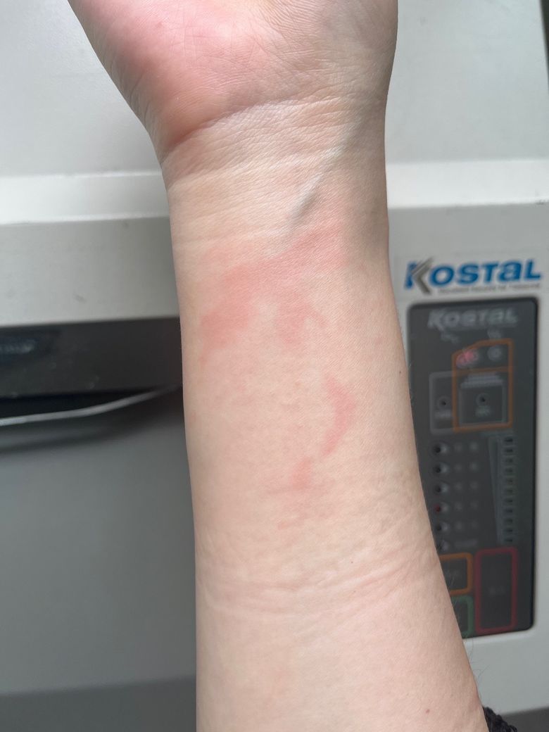 사진의 소견을 보았을 때에는 아직까지는 1도 화상으로 보입니다. 흐르는 시원한 물에 15-20분 정도 충분히 환부를 식혀주시길 권고드립니다. 이후에는 병원에 방문하여서 화상 드레싱을 받으시면 되겠습니다. 꾸준히 드레싱을 교체해가며 회복이 될 때까지 관리하시는 것이 필요한데, 화상의 경우 관리가 잘 되지 않을 경우 조직 손상이 진행할 우려가 존재하기 때문에 그냥 방치하시는 것은 위험할 수 있습니다.