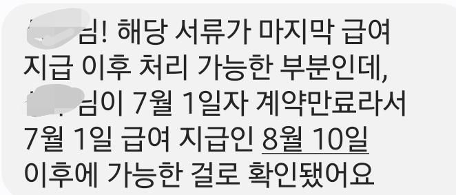 4.1~7.1 근무 후 계약만료 퇴사 했는데 7월1일 근무 때문에 익월 급여일인 8월 10일 이후에 이직확인서 처리가 가능하다네요...