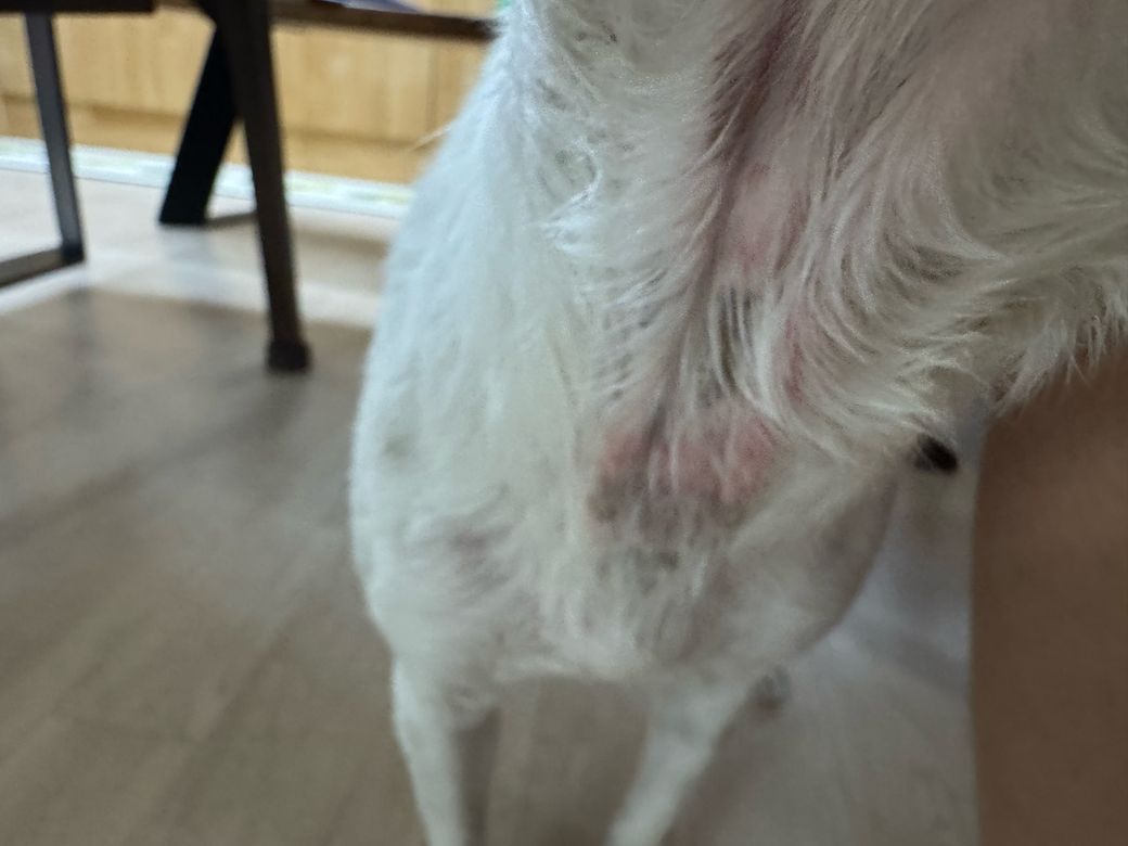 오늘 목욕시킬려고 보니까 목 피부가 빨갛고 전체적으로 다 빨갛게 올라왔더라고요.. 엄청 가려워하고,, 이거 피부병인가요? 사람한테는 전염성이 있나요?