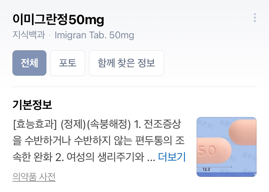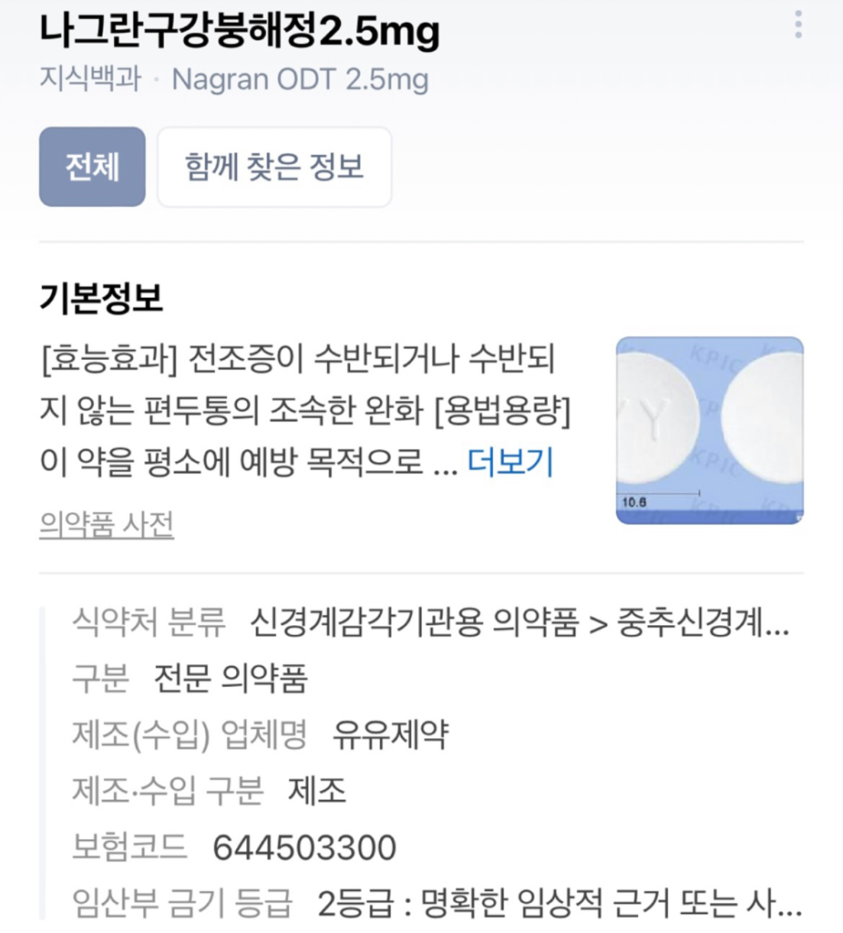 나그란을 2알 먹었으면 24시간 이내 이미그란은 먹을 수 없어요.