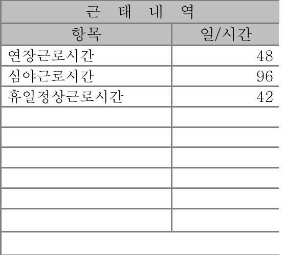 주5일 40시간 이상 출근을 하였고 2월엔 토요일 전부 출근하여 12시간(점심,저녁시간 제외 1.5시간)을 하여 10.5시간의 근무시간이 발생했습니다.