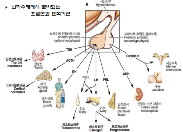 뇌하수체에서는 굉장히 많은 호르몬들이 분비됩니다.