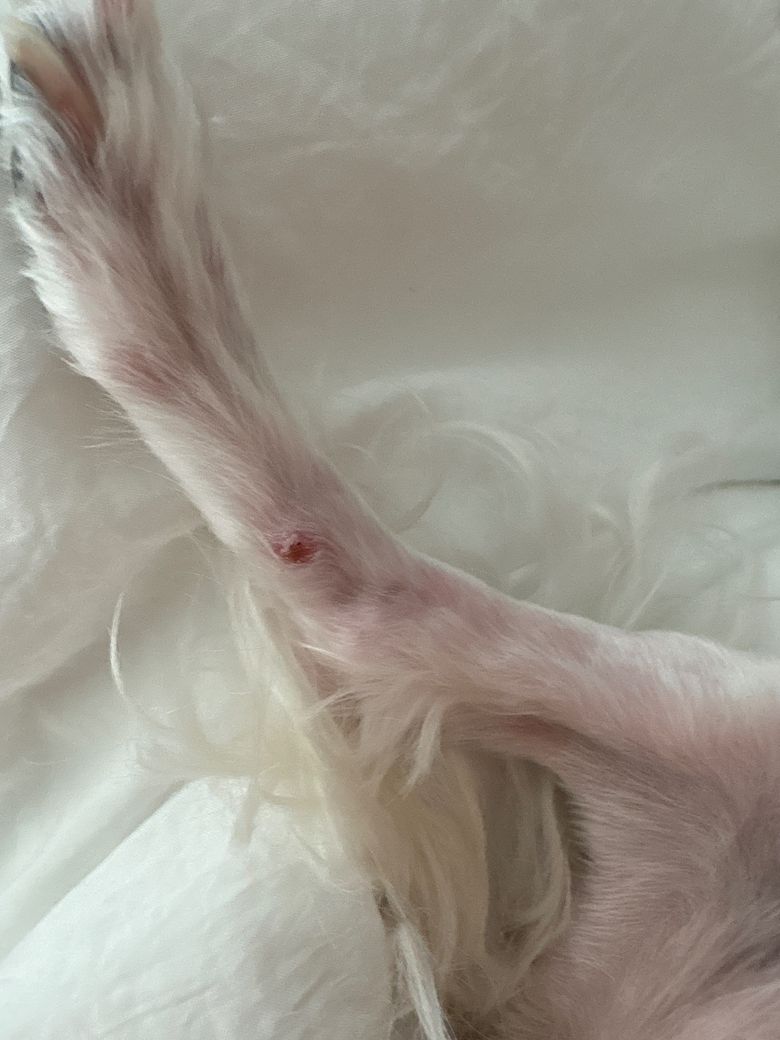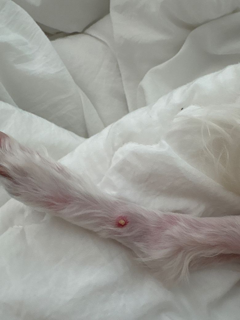 15살 강아지 다리에 혹 같은 게 나서 지켜보다가 커지진 않고 중간이 빨갛게 되기만 하길래 그냥 세게 만져봤더니 여드름 짜는 것처럼 톡 터지더니 여드름처럼 노란 무언가가 나왔어요 짜고 나서 혹같은 느낌은 사라졌어요 저게 뭔가요