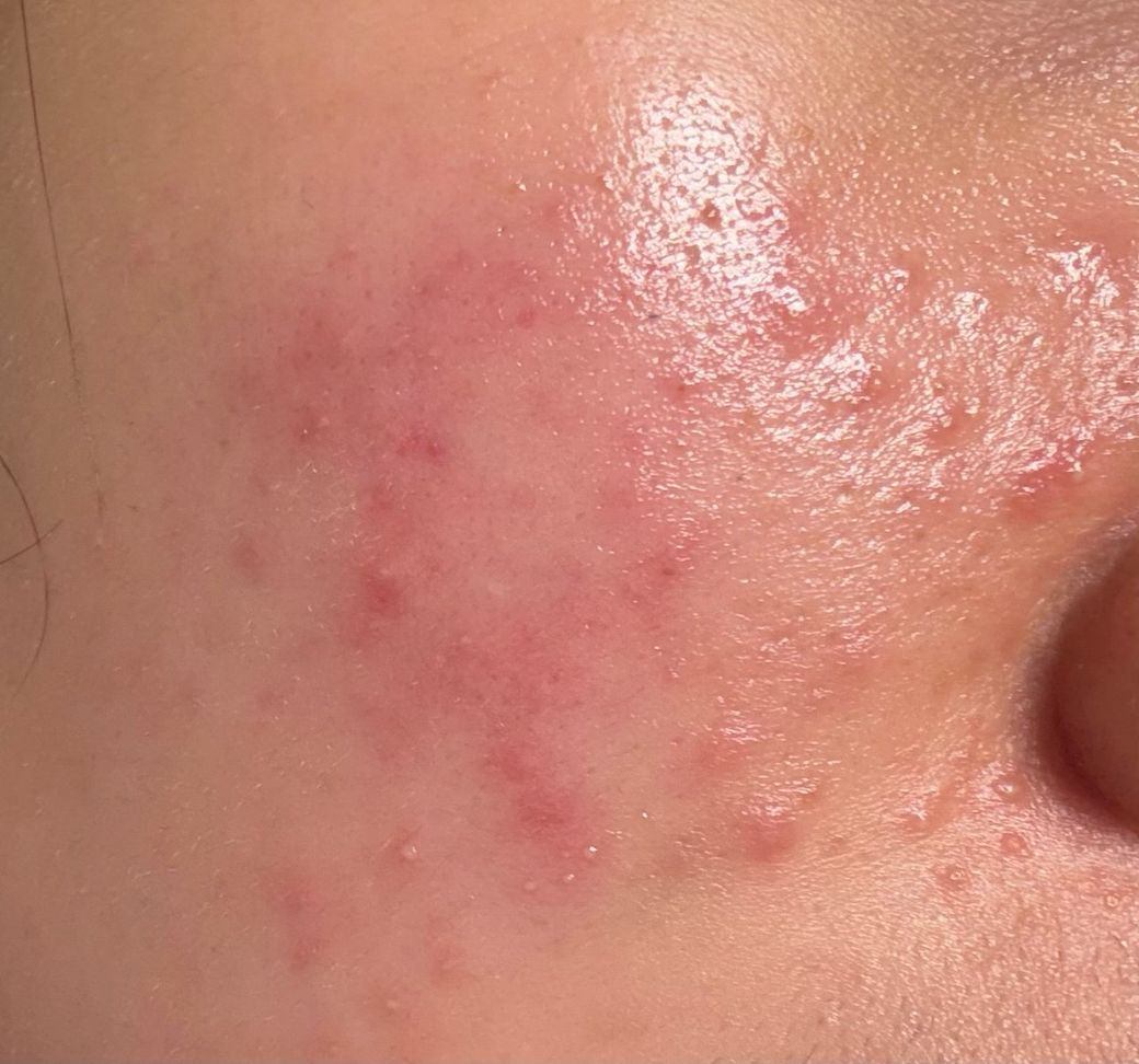 사진상 병변은 전형적인 단일 질환보다는 “여드름성 염증 + 모낭염 성분이 일부 혼재된 상태”로 보는 것이 가장 타당합니다. 주사피부염이나 스테로이드 유발 피부염의 전형적 양상과는 다소 거리가 있습니다.