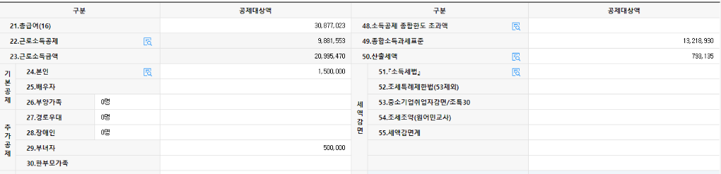 첨부해주신 사진의 근로소득금액이 3천만원 이하이므로 다른 소득이 없다면 부녀자공제가 가능한것으로 보입니다.