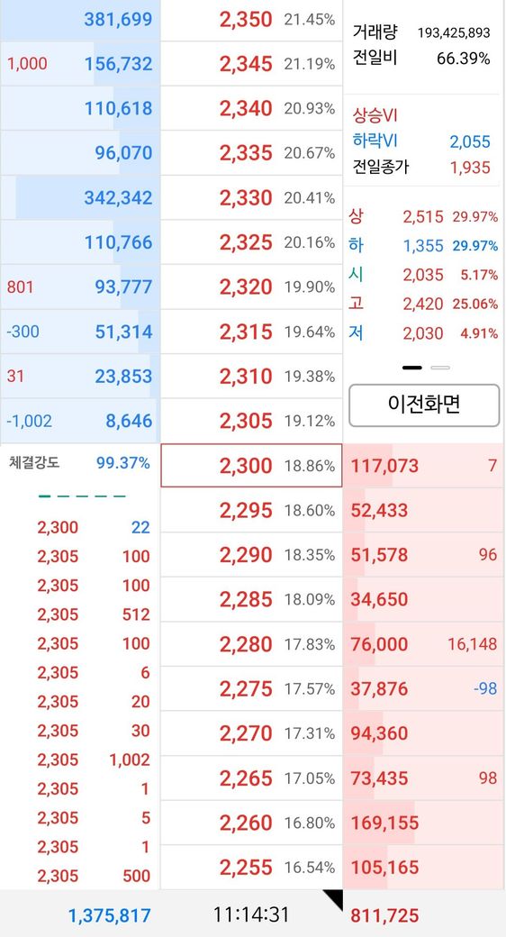 3. 네 2300원에 11만주 매수주문이 걸려있는겁니다.