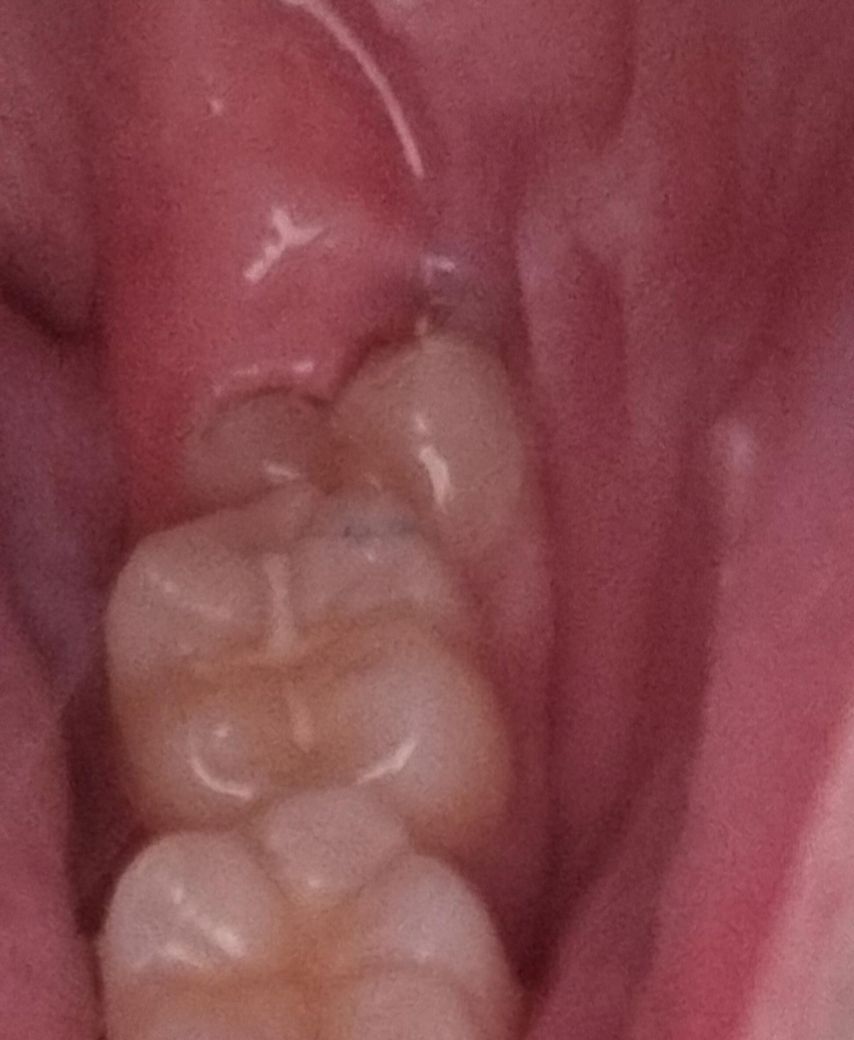 현재 일부분이 매복이되어 있는 상태로 잇몸을 절개하여 사랑니를 쪼개어 발치가 필요로 될 가능성이 높습니다.