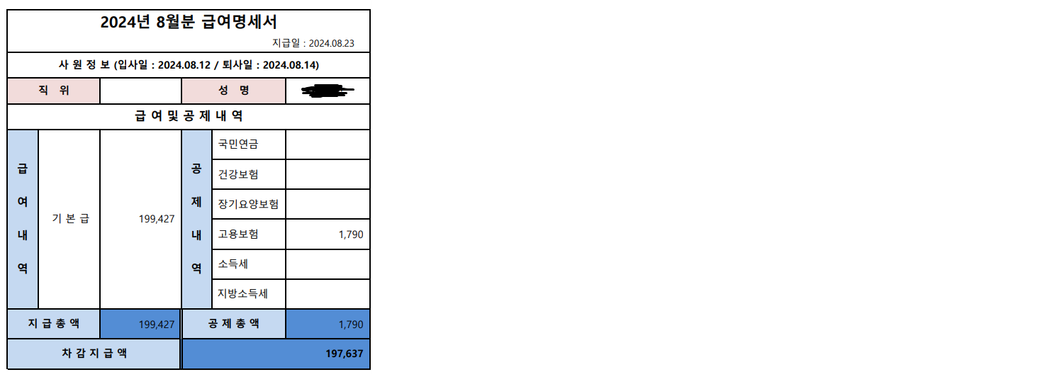 근데 사정이 생겨서 8월 12일부터 14일까지 3일근무후 퇴사하게 되었고
