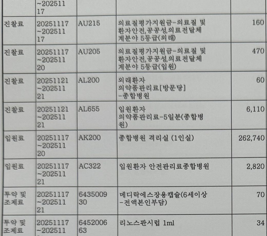 1인실로 처리되었으면 1인실로 보상되는 부분 있을거예요.