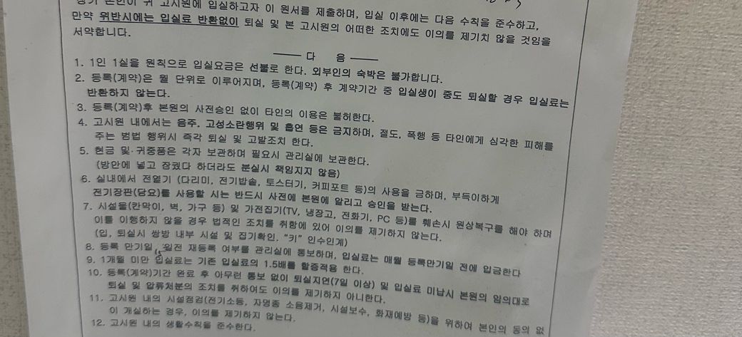 고시원 남은기간 20일 중도퇴실이라고 환불을 안 해줘요