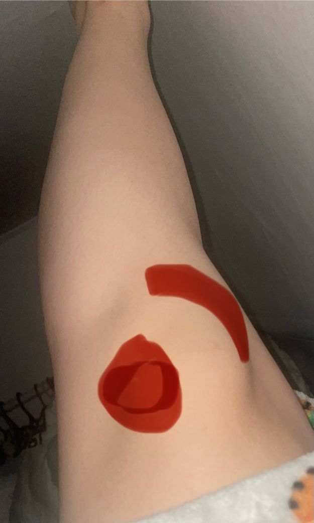 사진과 같이 표시한 부분 두군데가 가장 통증이 잘 느껴지 는 곳이에요..ㅠ 반대쪽도 거의 동일하게 느껴지구요 두 군데가 동시에 다 아프다기보단 동작을 바꿀때마다 바뀌면 서 아파진다는 느낌입니다 ㅠㅠ