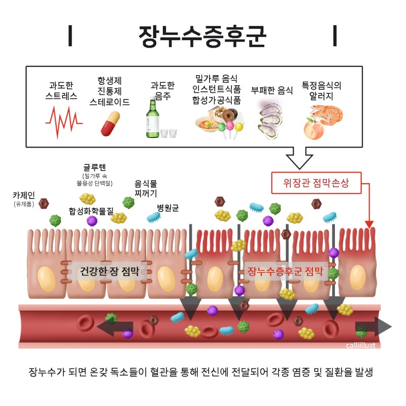 이로 인하여 여러 가지 질환 피부 면역등등이 생긴다는 이론이며