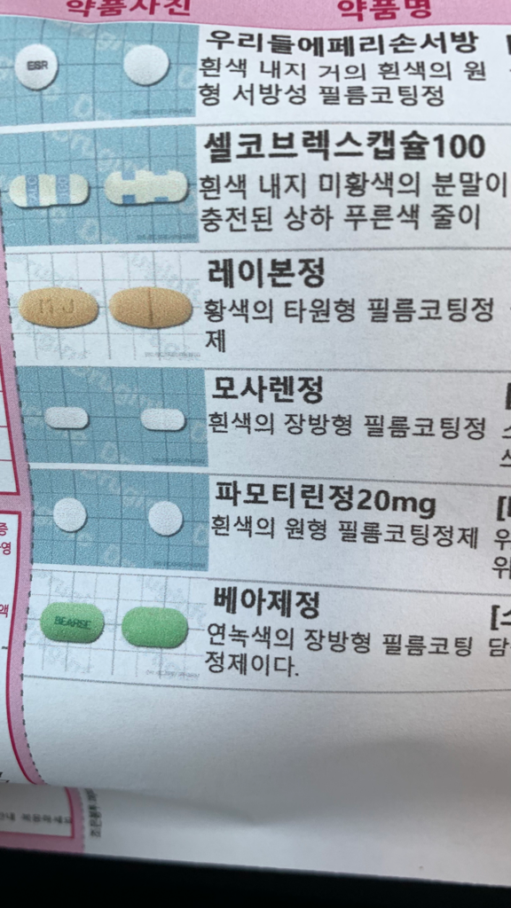 모사렌정과 파모티린정은 코팅된 약이다보니 쪼개시면 코팅이 보일 수 있으나