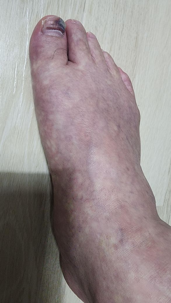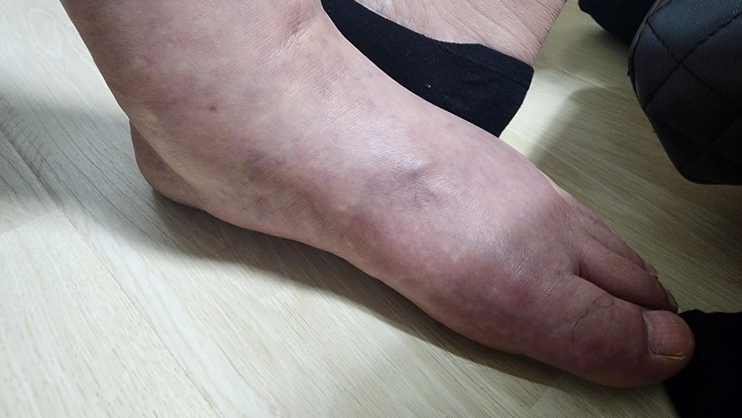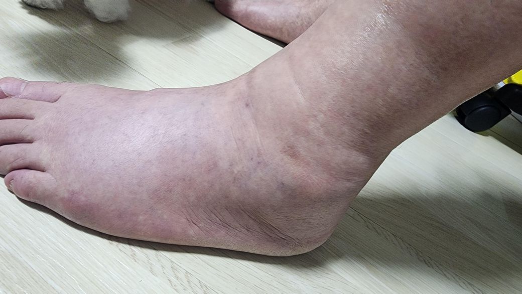 사진상으로 보면 다리 부종이 상당하고 어혈 반응도 많습니다.하지 정맥압이 높아져 있는듯 합니다.한의원에서 침치료 하시면 부종이나 어혈 치료에 도움이 됩니다.이대로 방치하시면 발에 상처가 나도 잘 낫지않고.다리가 무거워 넘어지시거나 발목을 삐끗하는 경우도 생길수 있습니다.허리 협착증도 이와 같은 증상을 유발할수 있겠습니다
