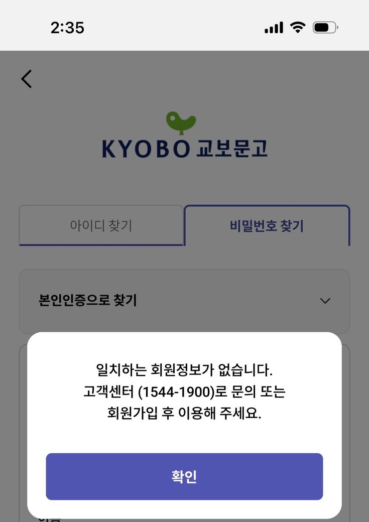 저가 교보문고에서 책사려고 로그인하다가 저가 sns로 연동해서 했는데 일치하는 정보가 없다고해서 또 회원가입하니 이미 있는 휴대전화번호라고하는데 혹시 도와주실 수 있을까요?