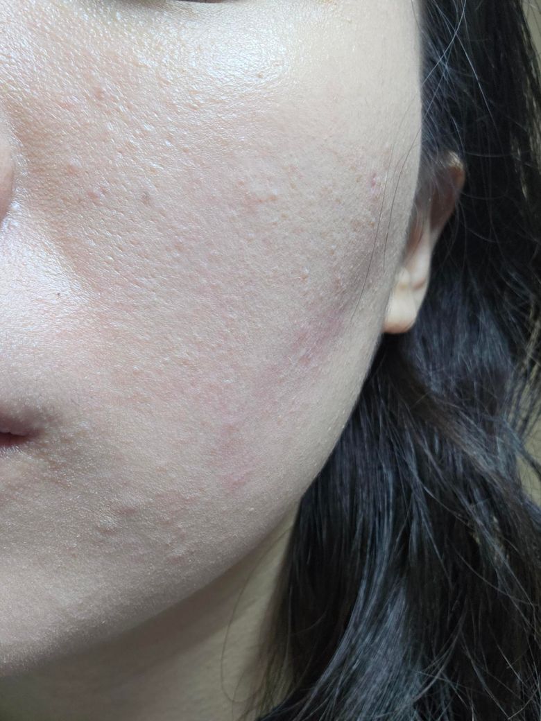 사진상으로 보이는 병변은 전반적으로 피부색 또는 약간 붉은 작은 구진들이 다수 분포한 형태로, 전형적인 편평사마귀나 한관종, 비립종의 양상과는 다소 다릅니다. 오히려 폐쇄면포(좁쌀 여드름) 또는 각질 정체로 인한 모공성 돌기 형태가 더 의심됩니다. 특히 전체적으로 균일하게 퍼져 있고, 개별 병변이 뚜렷하게 도드라지기보다 피부 결이 거칠어 보이는 점이 감별에 중요합니다.