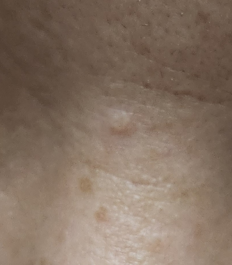 얼굴 미간부위인데 사진가운데 보시면 살색으로 살짝 튀어나와있는데 간지럽거나 아프지도않고 그냥 미관상 갑자기 보여서 좋지가않은데 자연적으로 사라지려나요?