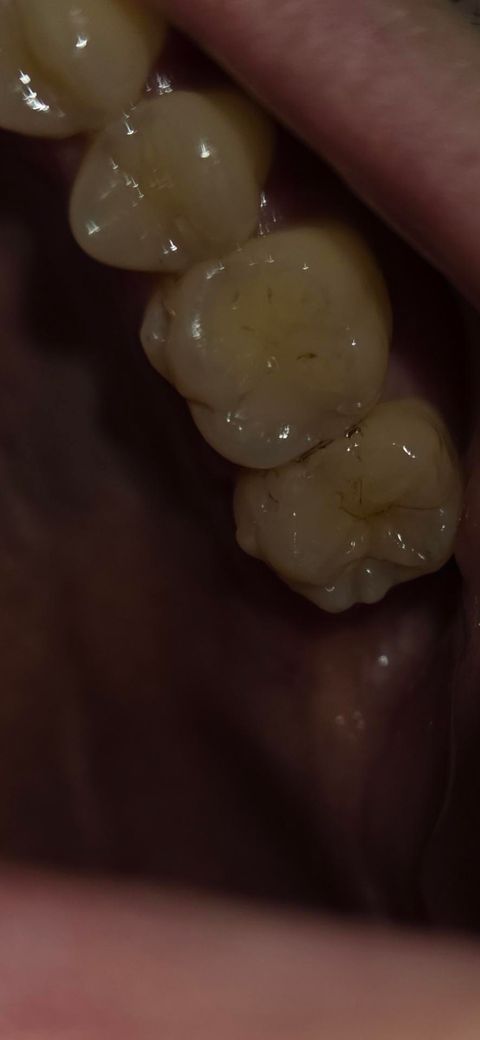 위쪽 왼쪽 어금니이고 아프거나 그렇지는 않은데 사진찍어보니까 검정색 선들이 보이고, 치아 사이에도 있는거같아서요 ㅠ 스케일링은 얼마전에 했는데 ㅠ 괜찮은건가요 ㅠ