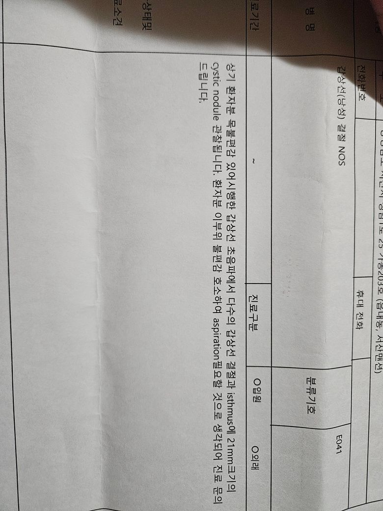 물혹이라고 하시고 아무말 없으신데 진료 의뢰서좀 봐주세요 2장 써주셨는데 괜찮은지 봐주세요