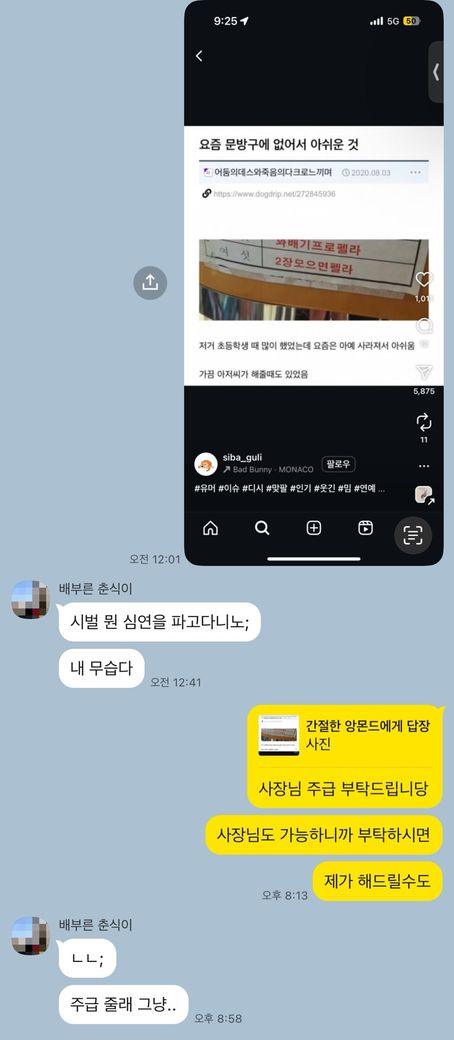 사장님과의 대화 통매음이 성립이되는지 알고 싶어요