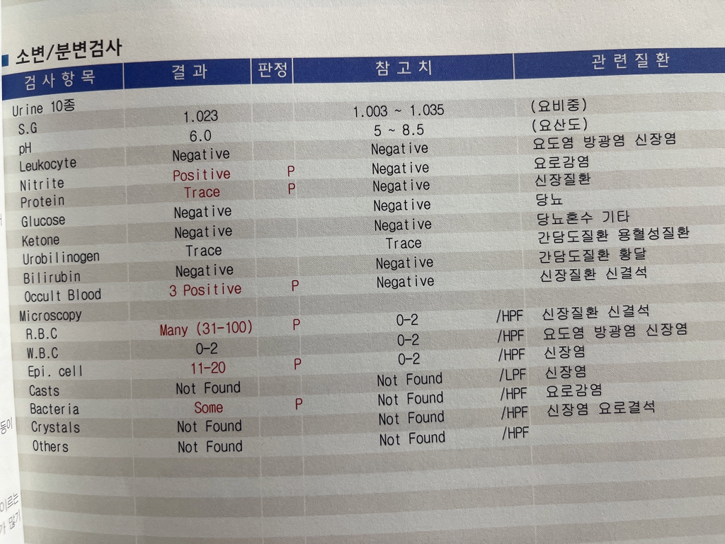 소변 검사상 말씀 주신 요로감염 가능성이 높아보입니다.