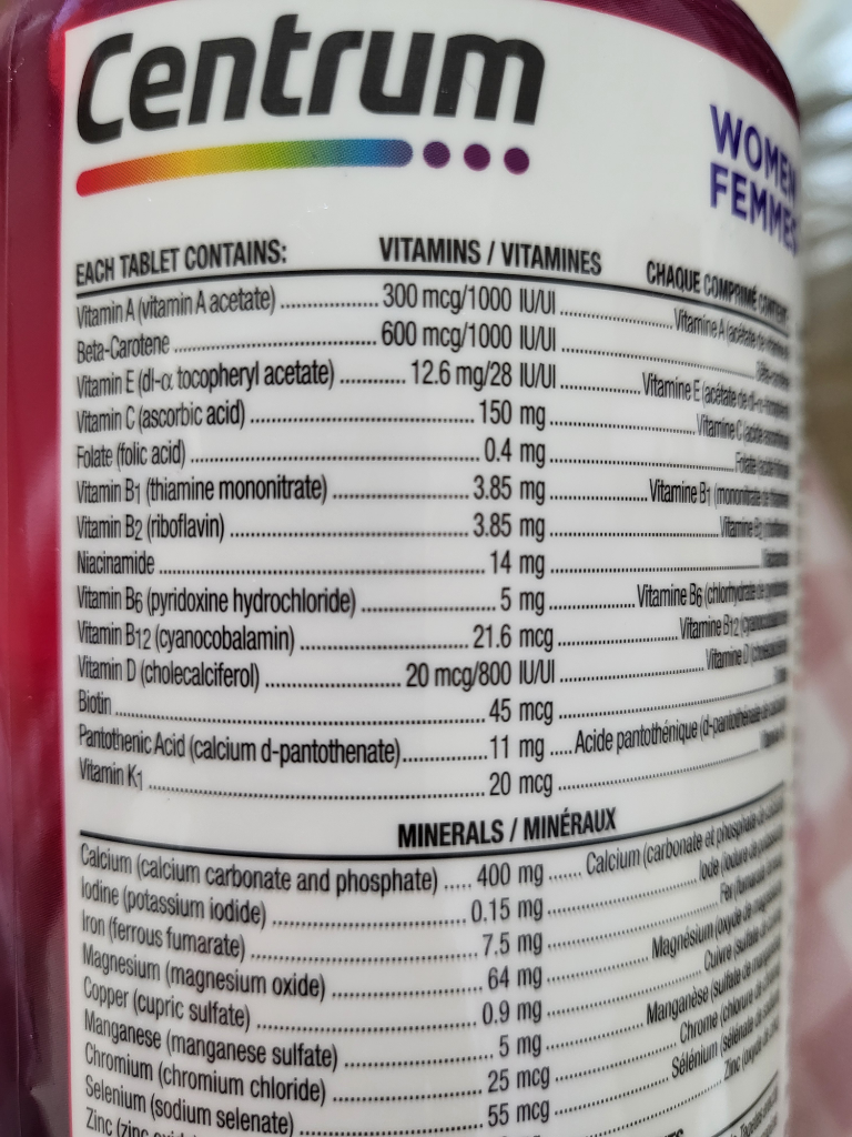 1. 사진으로 보여주신 센트룸제품에는 비타민A 성분이 들어있지만,