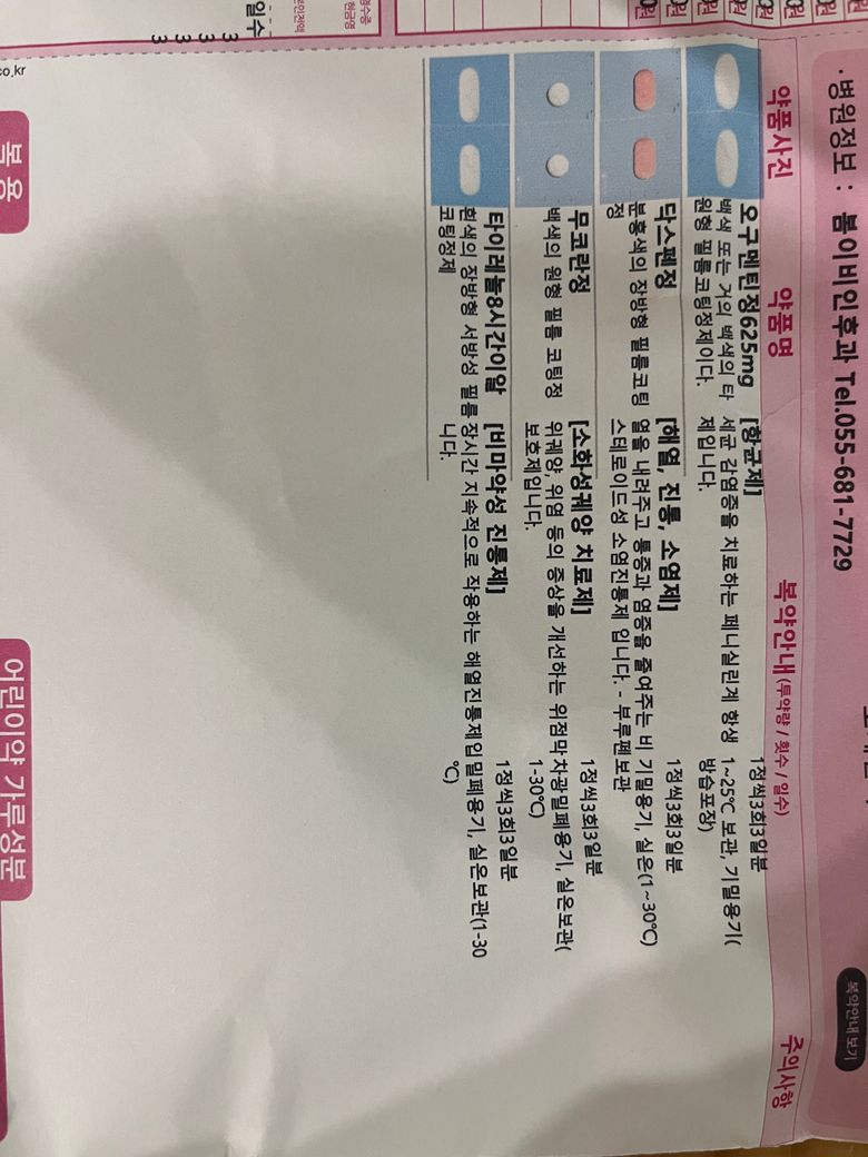 열감기에 걸려서 감기약을 처방받아왔습니다