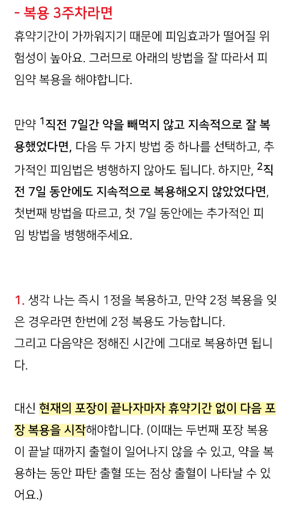 21일차 약을 복용하지 않고 휴약기에 들어가셔도 됩니다.