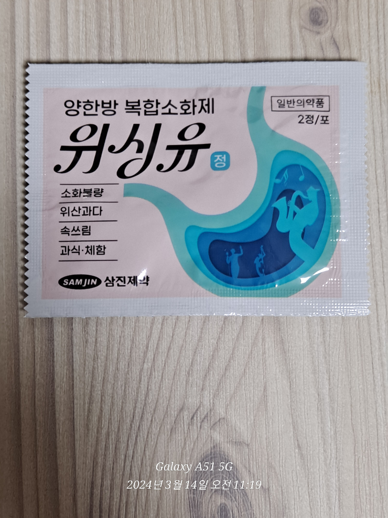 약국에서 구입한 위싱유 양한방 복합소화제 1포와
