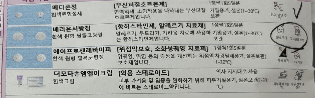 갑자기 피부에 두드러기같이 올라와서 약타왔는데