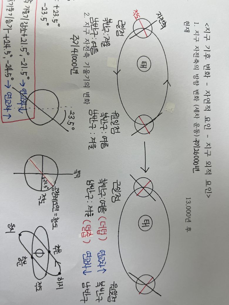태양의 위치에따라 지구의 적도와 자전축이 사진처럼 바뀐다는데 그이유가 무엇인가요??? 적도 반대로 자전축도 반대방향을 향하는데..