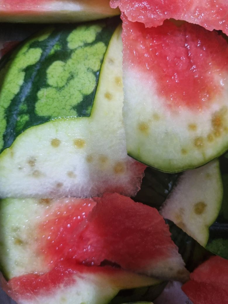 수박을 시장에서 사왔는데 썰어서 열어보니 수박 하얀 부분이 이런식으로 노란색 반점이 전체적으로 있더라구요 살짝 썰어먹어보니 맛은 괜찮고 엄청 달달한데 문제가 있는거같아서 혹시나해서요