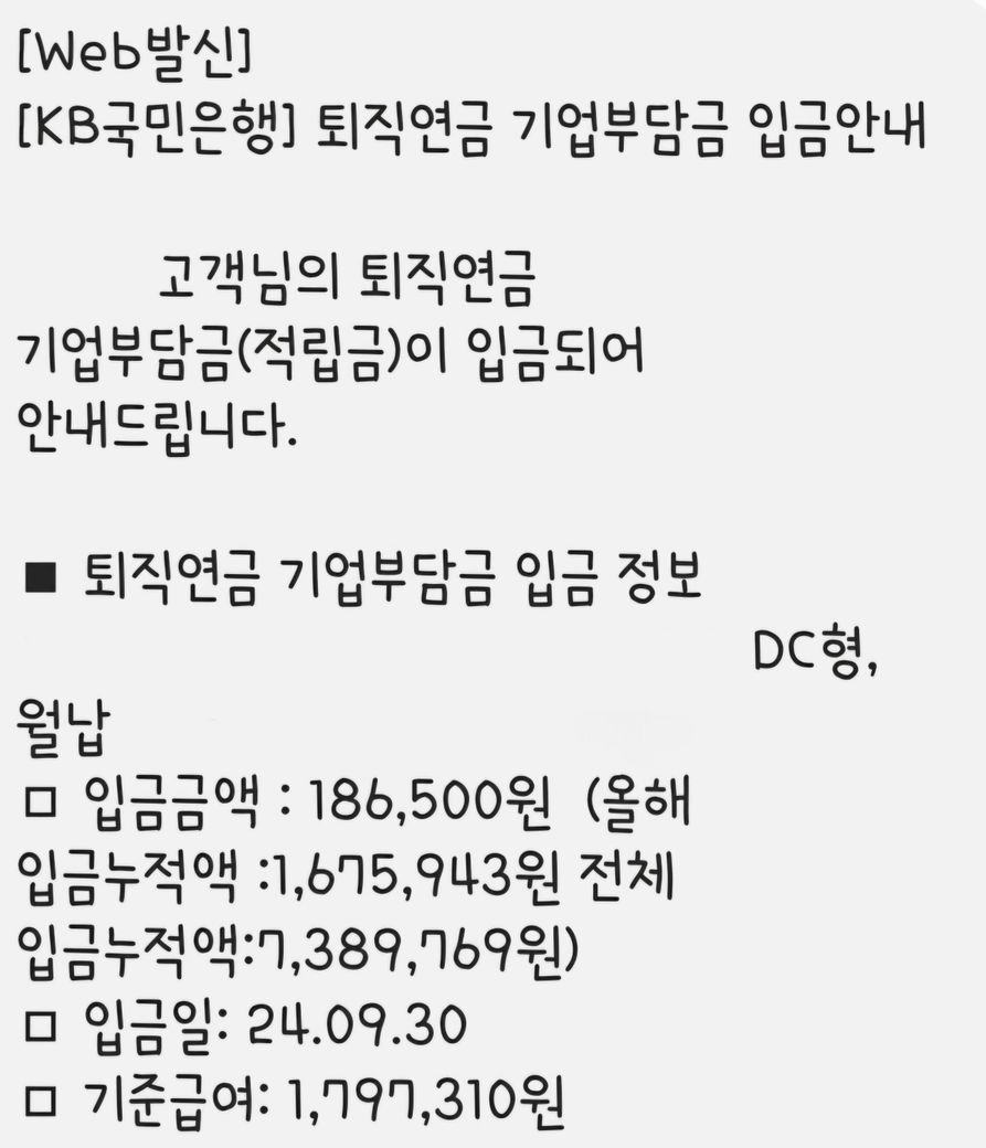 제가 2020년12월7일입사하여 다음달인 2024년11월7일까지 근무후 퇴사를 할 예정입니다 몇일전 퇴직연금을 문자온걸읽어보다가 기준급여에 1,797,310원이 적혀있길래 이게 무슨급액인가싶어서 은행사에물어봤더니 제급여금액이라합니다 근데 저금액은 초장기 월급이고 매년2월에 월급인상이되어 지금월급금액과는 다른 금액이며 지금까지 초장기월급으로해서 퇴직연금이 계속 입금되어 쌓여있는거더라구요