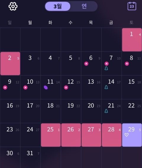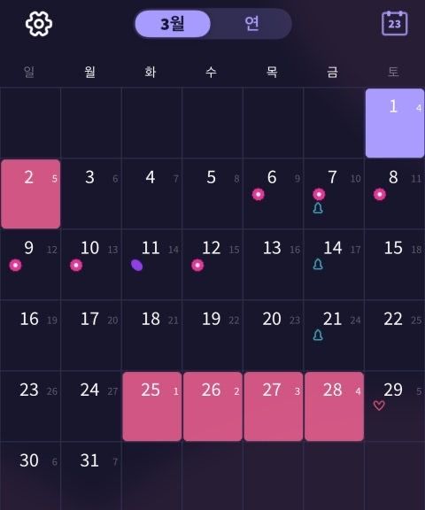 11-12월까지 생리불순 때문에 주기가 불규칙 하다가 1월부터