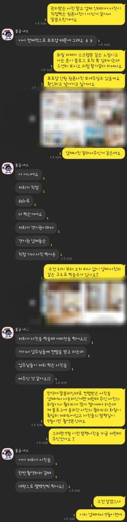 대화당시 막말로 라면서 제가 다른 업체에 현혹 되거나 이상한 메일 과 주변인들의 말만듣고 확인되지 않은 헛소문을 듣고 뭐라한다며 폭풍 카톡을 하셨는데 저는 다른업체와 말을 하지도 이중계약도 하지 않았으며 대체 무슨이메일을 말하는건지도 모르겠고 다른사람이 해준말은 이거 사진 좀 이상하니 물어봐라 가 다였는데 뭣 모르는 지인이 불씨고 본인들은 잘못한게 없으며 헛소문을 듣고 제가 억지를 부린다고 합니다... 위 대화내용은 캡쳐하기도 짜증나 올리지 않았습니다 ㅠ