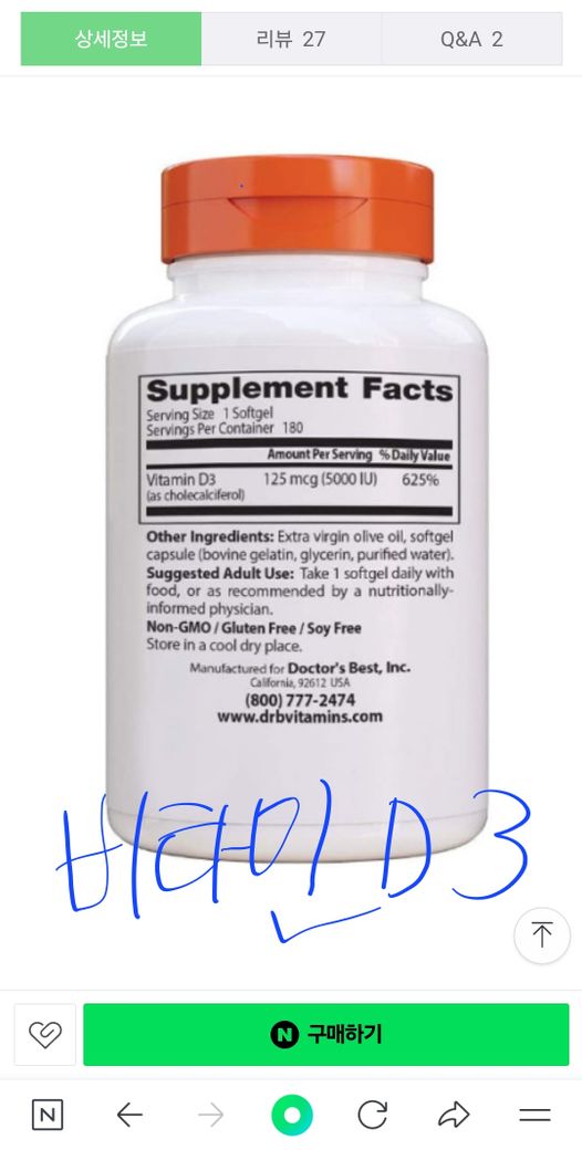 비타민D3 제품의 경우 단독으로 5000iu라면 함량이 높은 편이니,